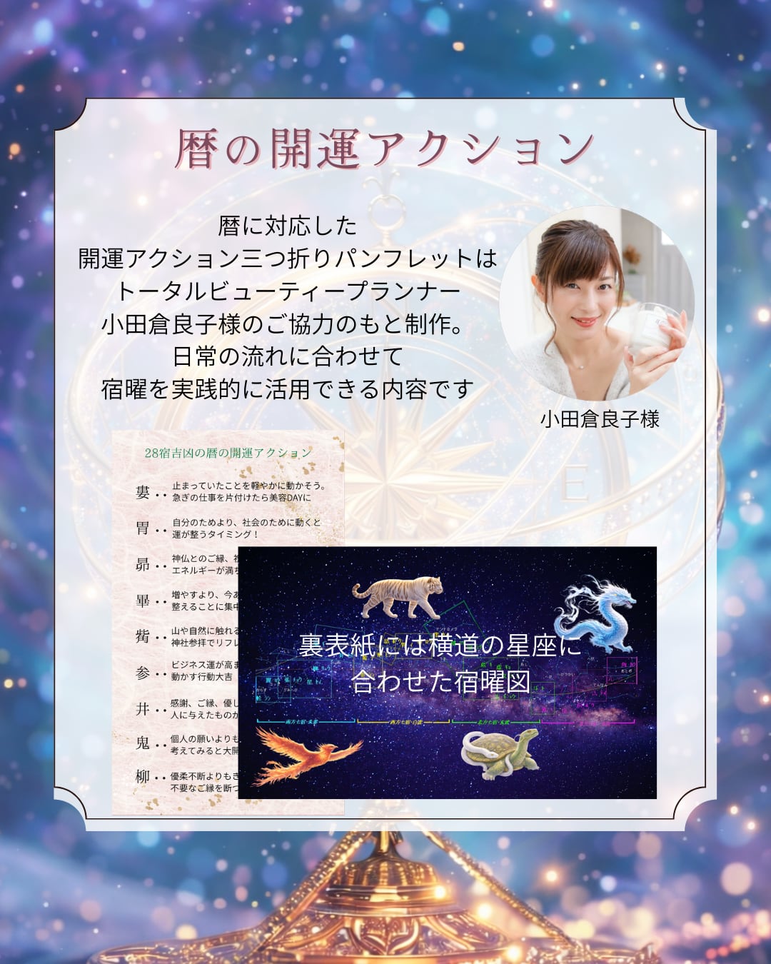 @ryokoodakura さんのご協力元に、暦で使われる宿曜の開運アドレスの三つ折りパンフレットをお届け